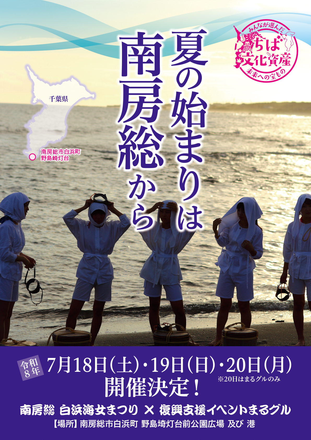 時 間:まるグル14時00分から/海女まつり・炎の幻想絵巻20時00分から